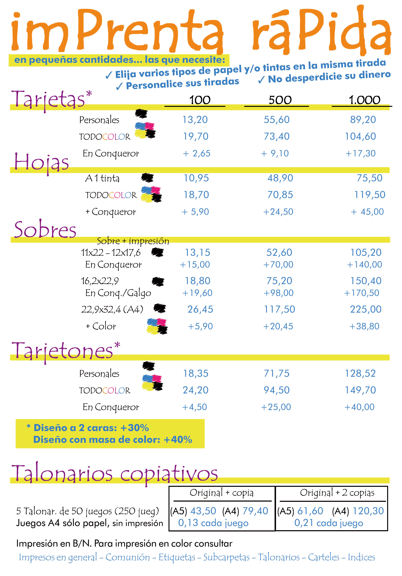 Imprenta rápida: Hojas - Sobres - Tarjetas - Talonarios - Tarjetones