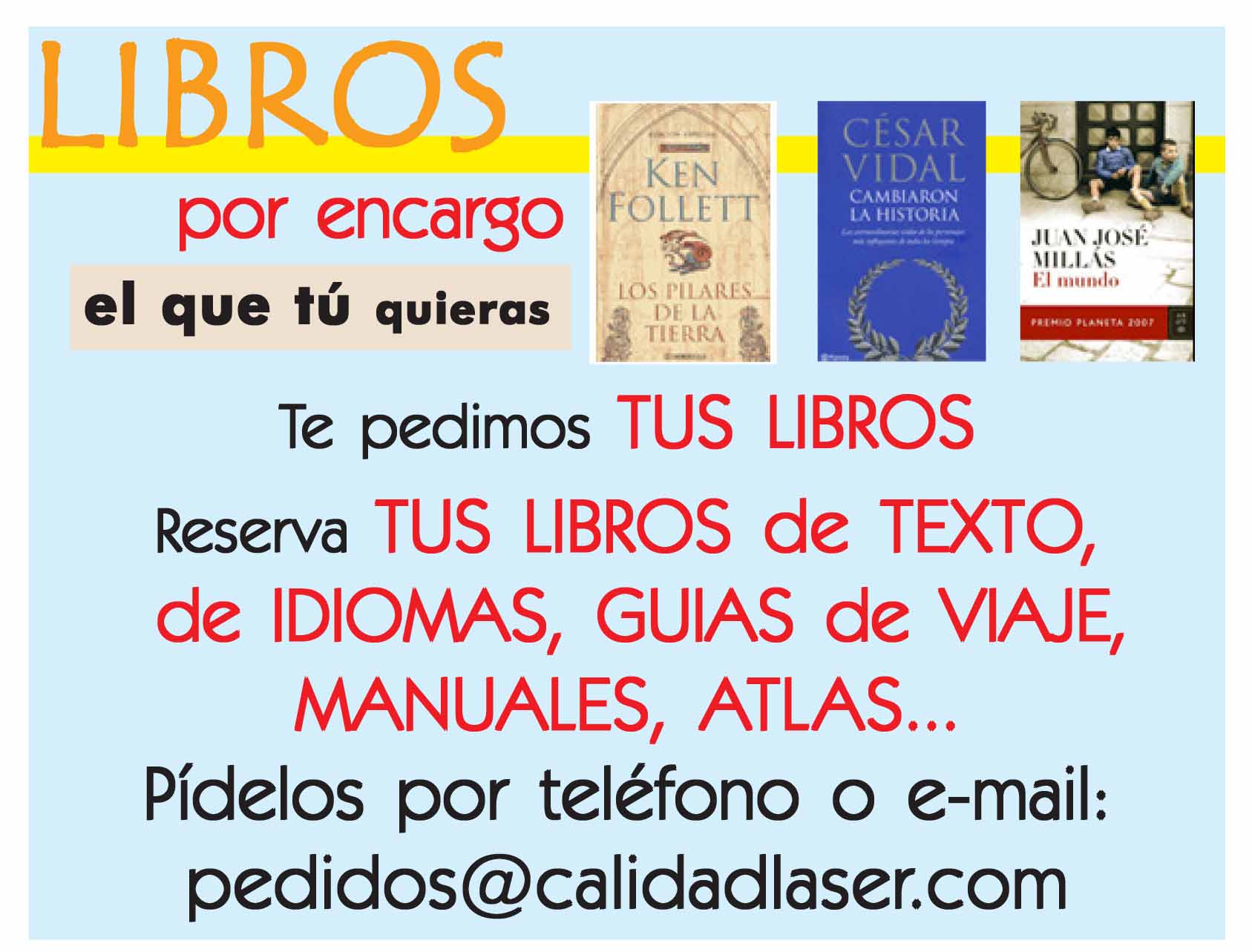 Listado de libros disponibles. Actualizado al 24.02.2010. Puede sufrir variación. Libros de lectura (literatura) ordenados por título Libros de lectura (literatura) ordenados por autor Libros de texto ordenados por editorial y título Cuadernillos de texto ordenados por editorial y título Encárguenos sus libros de texto y sus libros de lectura. Haga click aquí y pídalos por mail También aceptamos los cheques-libro (tarjeta) de la Comunidad de Madrid |