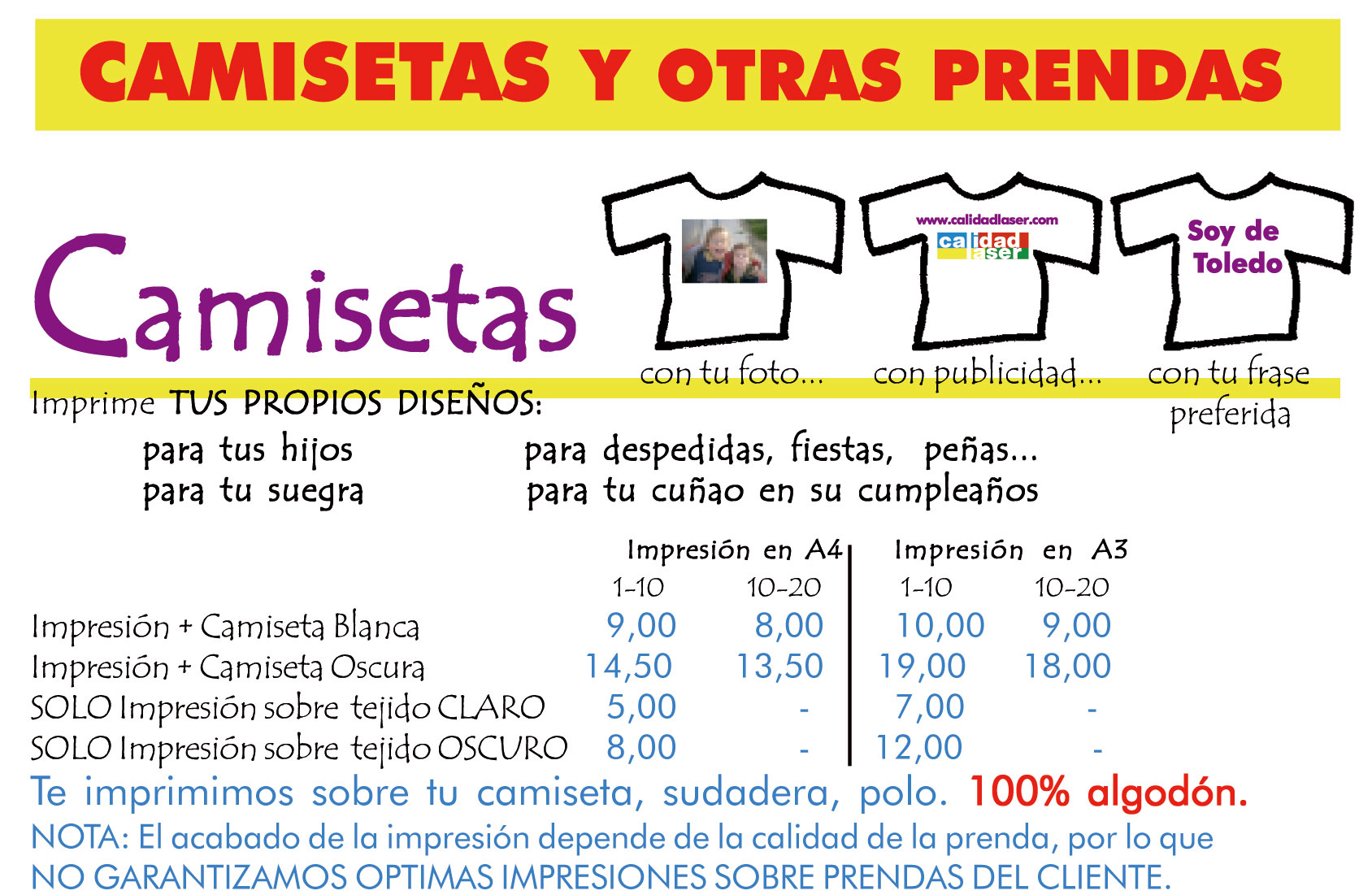 Regalos Personalizados. Camisetas y otras prendas